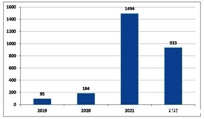 图二:2019年至2022年数字教育雷竞技官网rb案件收案量情况